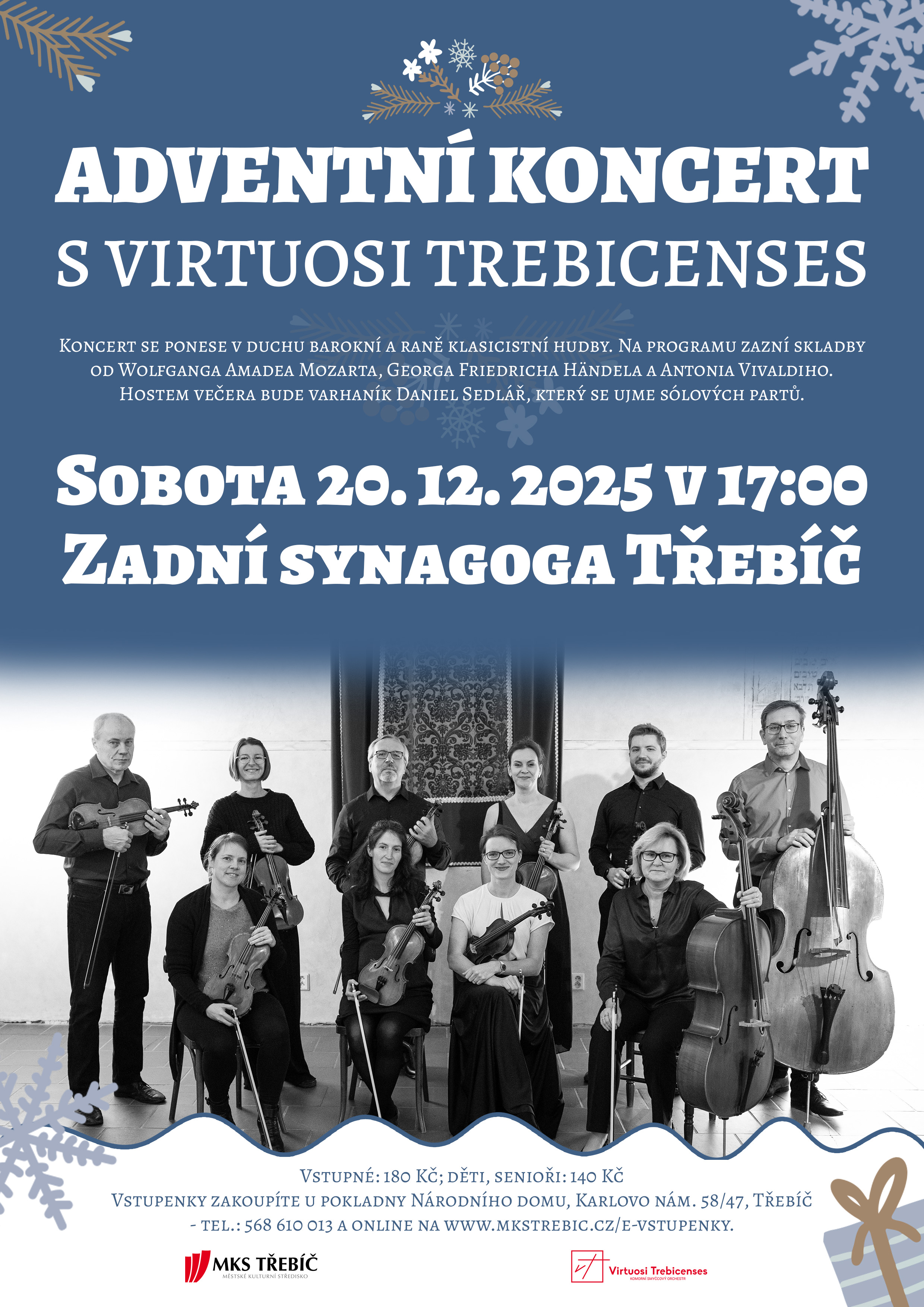 Adventní koncert s Virtuosi Trebicenses se ponese v duchu barokní a raně klasicistní hudby. Na programu zazní skladby od Wolfganga Amadea Mozarta, Georga Friedricha Händela a Antonia Vivaldiho. Hostem večera bude varhaník Daniel Sedlář, který se ujme sólových partů.