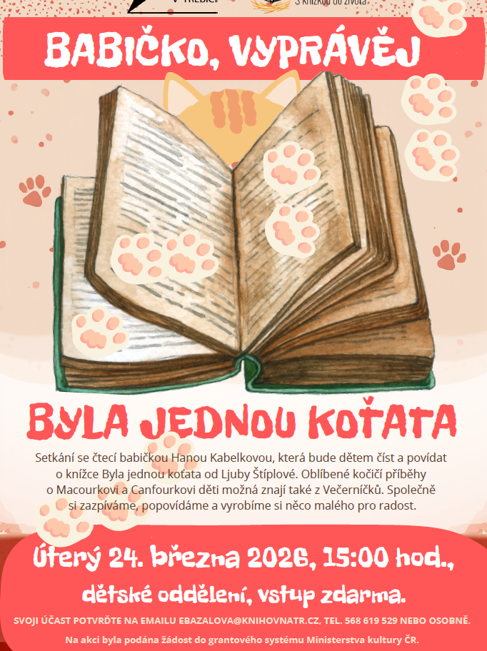 Setkání se čtecí babičkou Hanou Kabelkovou, která bude dětem číst a povídat o knížce Byla jednou koťata od Ljuby Štíplové.
