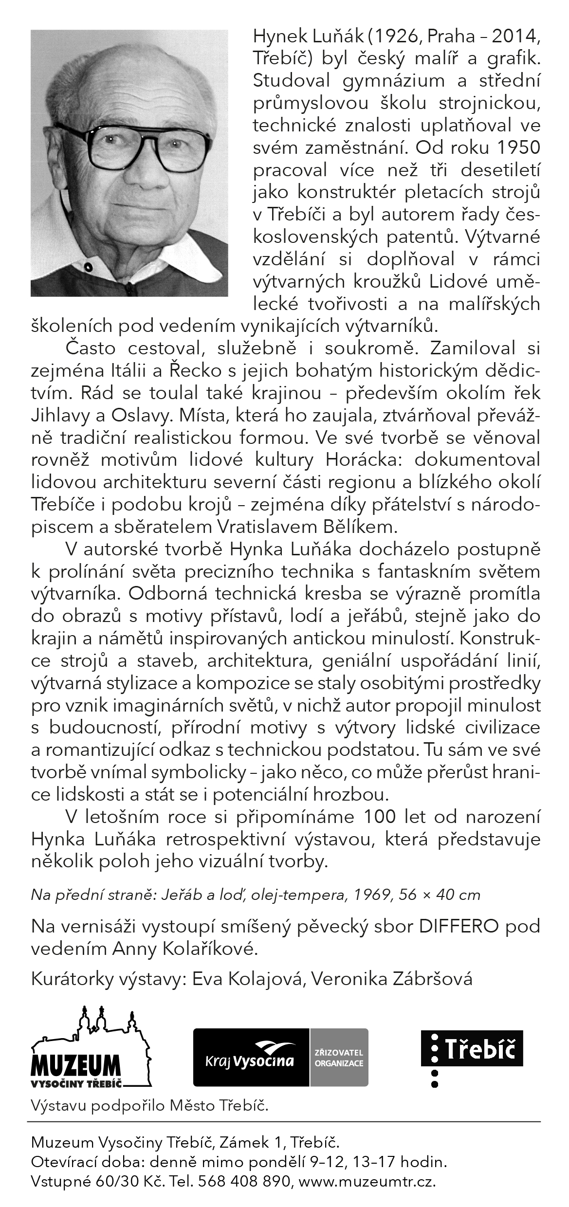Hynek Luňák byl český malíř a grafik. Od roku 1950 pracoval více než tři desetiletí jako konstruktér pletacích strojů v Třebíči a byl autorem řady československých patentů. Výtvarné vzdělání si doplňoval v rámci výtvarných kroužků Lidové umělecké tvořivosti a na malířských školeních.