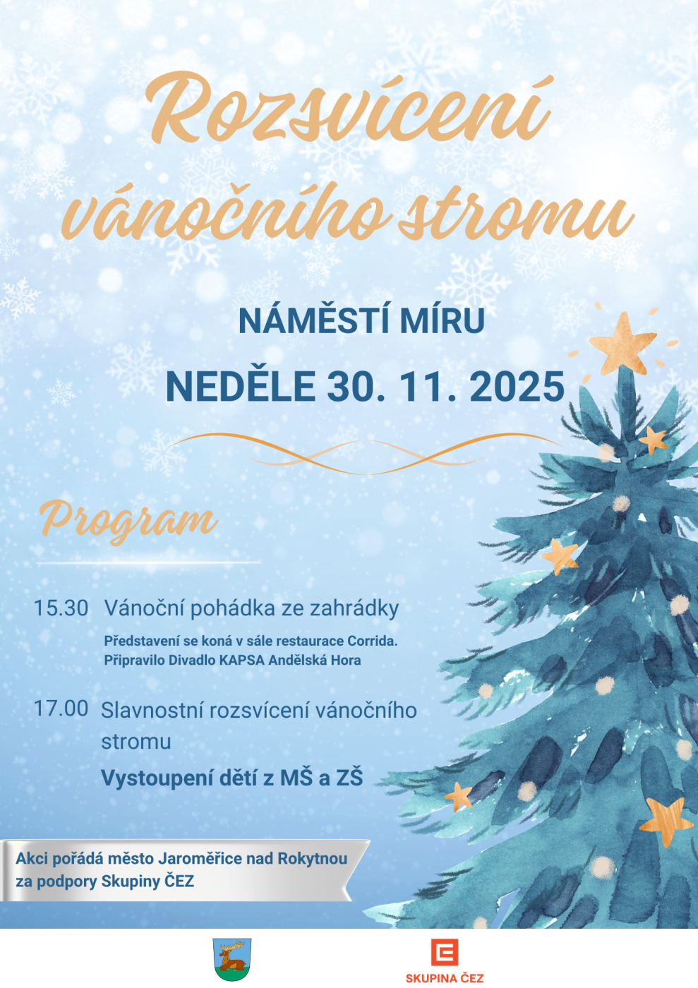 od 17:00 Slavnostní rozsvícení vánočního stromu