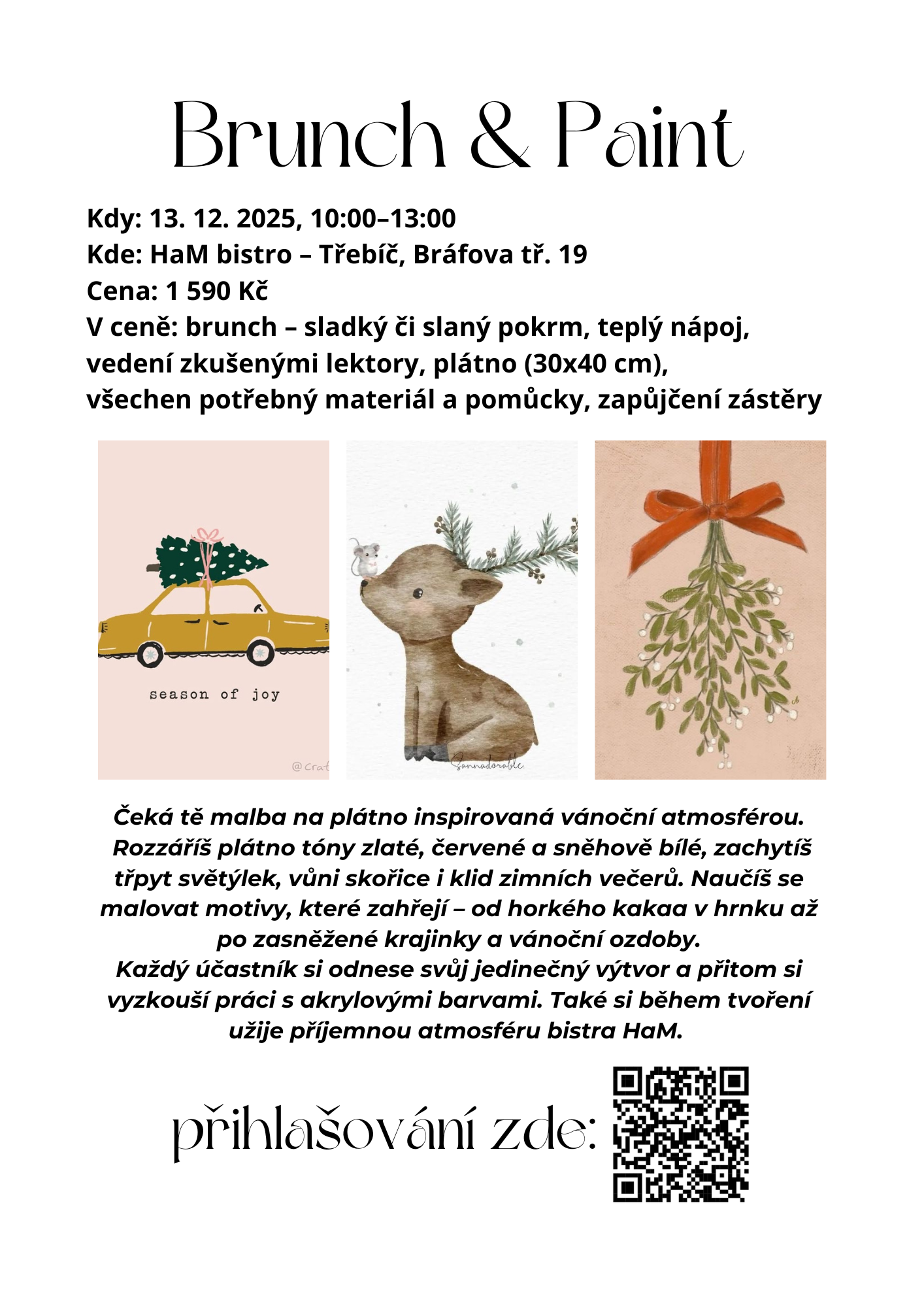 Každý účastník si odnese svůj jedinečný výtvor a přitom si vyzkouší práci s akrylovými barvami. Také si během tvoření užije příjemnou atmosféru bistra HaM.