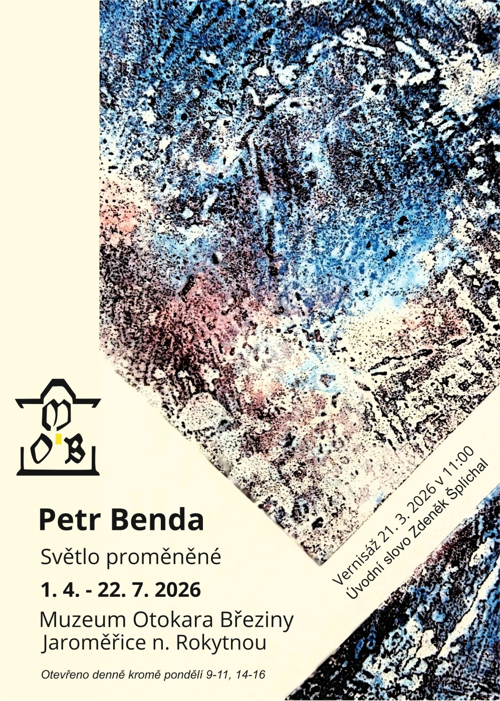 Světlo proměněné - tak zní název výstavy Petra Bendy, která bude k vidění v Muzeu Otokara Březiny v Jaroměřicích nad Rokytnou do 22. 7. 2026 každý den v otevírací době muzea kromě pondělí. Vstup na výstavu zdarma.